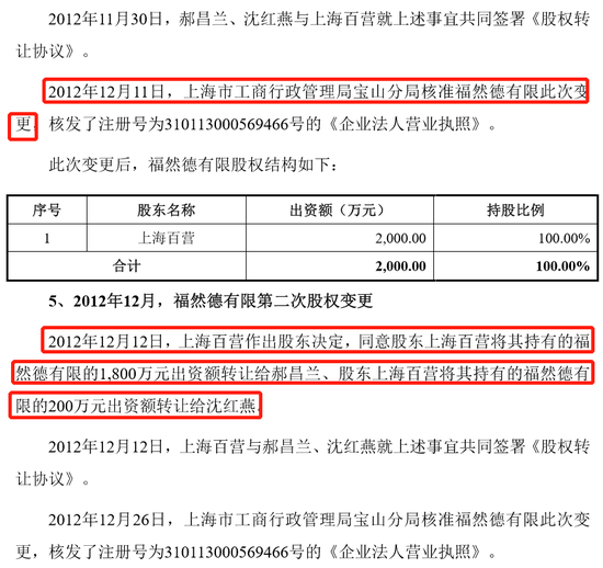 2、2012年12月,郝、沈将公司股权全部转让给上海百营,12月11日才完成工商变更登记,第二天又匆匆召开股东会,同意上海百营将所持公司股权全部转让给郝、沈。
