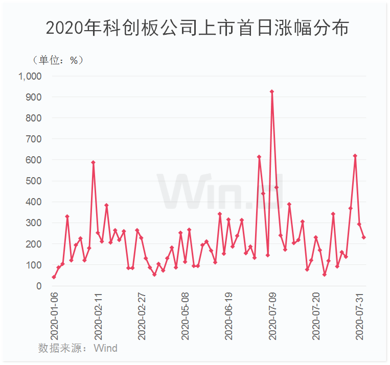 虽然当前新股发行数持续攀升,但个股涨幅反而逆市上行。从今年以来上市的科创板公司首日涨幅分布来看,近期上市新股涨幅明显高于4月份,涨幅超过200%已是常态,部分个股涨幅甚至达900%。虽然当前供给增加,个股涨幅反而更大。可见,投资者热情依旧高涨。