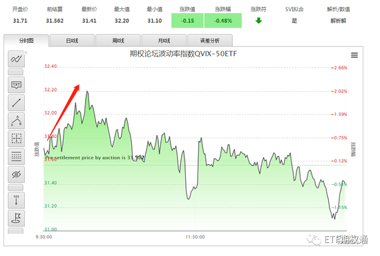 早晨标的下探时,认沽涨幅接近20%,认购下跌较多。随后标的反弹, 认沽逐渐回落,但最后认购也没能翻红。波动率实际还有所上升。