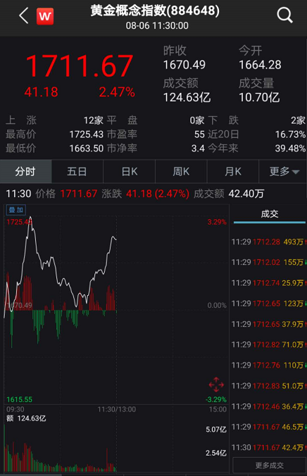 8月6日上午,黄金价格持续创出新高,带动黄金概念指数、贵金属指数异动明显。