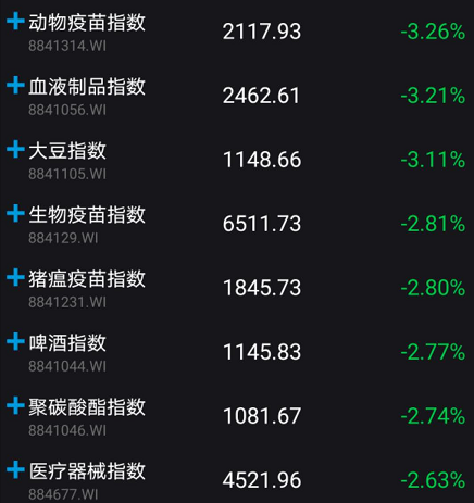 从盘面上看,除了疫苗指数之外,血液制品指数、动物疫苗指数、猪瘟疫苗指数、医疗器械指数、新冠肺炎监测指数等悉数下跌。