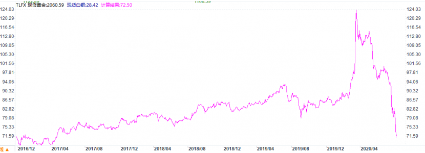 美银提醒投资者,白银价格实际上更多受到工业需求的驱动,在疫情封锁期间这部分需求受到抑制。在相对价格方面,金/银比目前已从之前的124倍的峰值下降至72倍,但距离59倍的长期平均水平仍然有一段距离。
