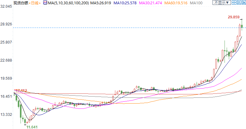 随着工业制造商对白银的购买量回升,白银价格最近表现一直强于黄金。此外美国政府进一步放宽财政政策的前景也对白银价格起到支撑作用。