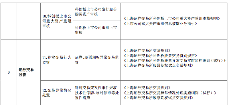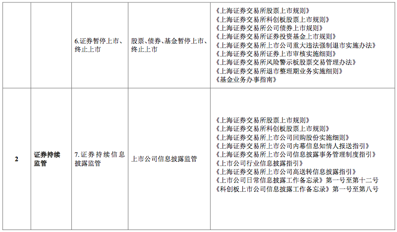 上交所表示,此次向市场公开发布自律监管、市场服务事项及办理依据,旨在全面杜绝可能存在的“口袋政策”、“隐性门槛”等问题,推进“阳光监管、透明监管”,为市场主体提供业务便利和稳定预期。