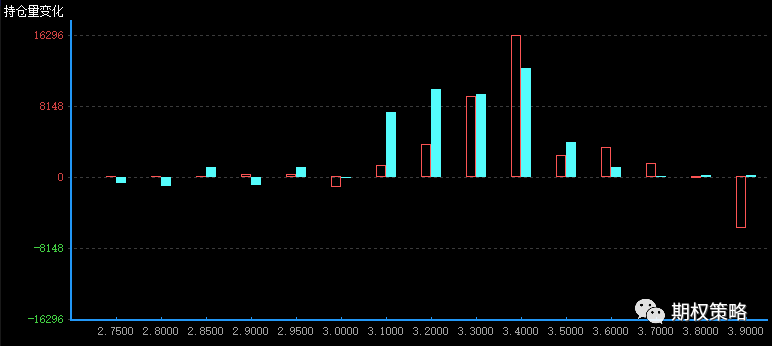 从8月持仓分布来看,仍是认购在3400处持仓最大,认沽在3100处持仓最大,沪市50ETF支撑压力不变。