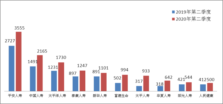 人身险公司中,平安人寿、中国人寿、太平洋人寿的投诉量位列前三名。人身保险公司投诉量居前10位的为:平安人寿3555件,同比增长30.36%;中国人寿2165件,同比增长45.20%;太平洋人寿1730件,同比增长40.54%;泰康人寿1247件,同比增长39.02%;新华人寿1101件,同比增长23.57%;富德生命994件,同比增长98.01%;太平人寿933件,同比增长194.32%;华夏人寿642件,同比增长101.89%;阳光人寿544件,同比增长29.22%;人民健康500件,同比增长21.36%。