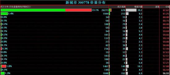 分价数据显示,新城市早盘有26273手交易发生于涨停价位,占到早盘成交总量的33.1%。在当前T+1的交易制度下,这部分筹码日内浮亏已达18%。