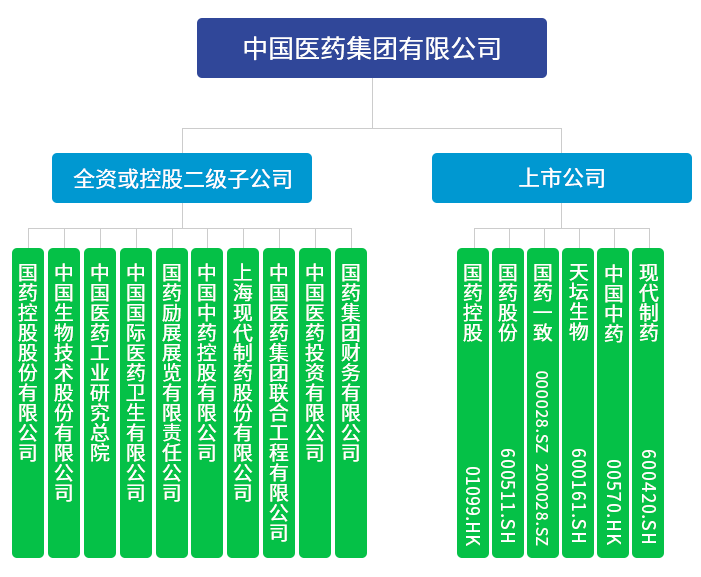 国药集团官网显示,目前集团旗下上市公司有6家,分别是国药控股、国药股份、国药一致、天坛生物、中国中药、现代制药。其中,北京天坛生物制品股份有限公司是一家从事疫苗、血液制剂、诊断用品等生物制品的研究、生产和经营的企业,于1998年由北京生物制品研究所在上交所发起上市,现在的控股股东是中国生物技术集团公司,持股比例49.96%。