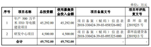 相关资料显示,此次申报的ITO导电膜建设项目与公司2018年时申报的内容差异并不大,不过按材料披露所示,当年该项目的总投资额为2.92亿元,而如今的招股书中披露却升至4.53亿元。