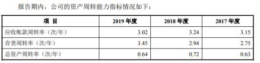2016年、2017年、2018年、2019年,日久光电应收账款周转率(次/年)分别为3.99、3.15、3.24、3.02。2016年、2017年、2018年,同行业上市公司应收账款周转率平均值分别为2.80、2.82、2.81。
