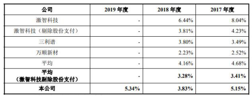 2016年至2018年,同行业公司的研发费用率平均值分别为5.22%、5.98%、5.41%。