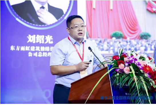 东方雨虹(ORIENTAL YUHONG)建筑修缮总经理刘绍光出席此次主论坛,作了题为《助建筑百年无忧护百姓安居乐业——建筑修缮全面助力城市更新》的演讲。
