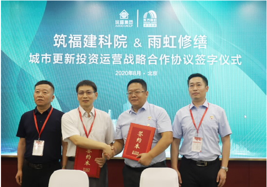 东方雨虹(ORIENTAL YUHONG)建筑修缮举行了建筑e院APP启动仪式;与筑福集团举行签约仪式,致力通过强强联合,推进我国既有建筑改造防护事业再上新台阶。