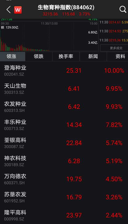 受其影响,当天A股市场生物育种指数大涨近4%左右。