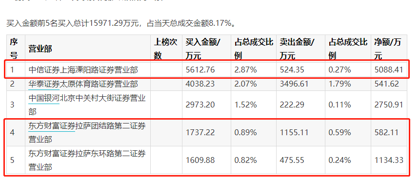 从当天龙虎榜数据看,中信证券上海溧阳路买入35259.74万元;兴业证券陕西分公司买入13831.94万元;中国银河证券绍兴营业部买入7554.33万元。