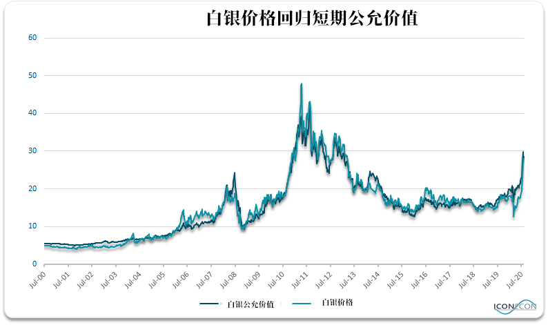 但是,从目前来看,过去一个多月的飙升,白银价格已经逼近其公允价值,这意味着白银不再被低估。