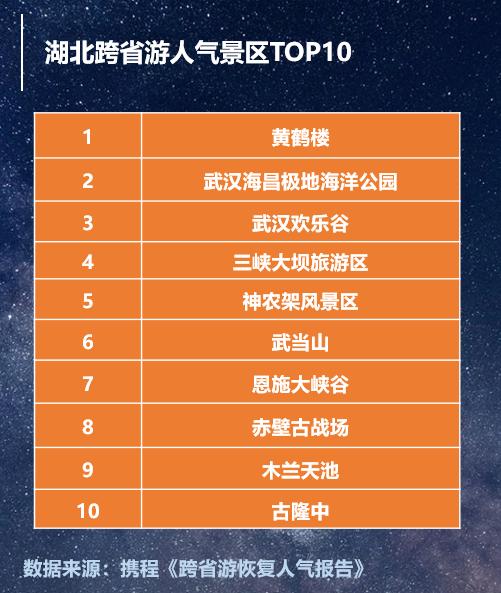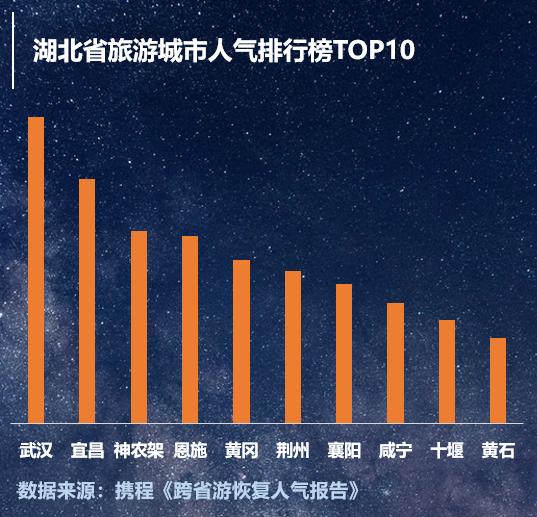 众所周知,今年湖北省和湖北人民为战胜疫情奉献了很多,荆楚文化一直深受外地游客的喜爱,全国人民在为湖北加油的同时,也对重启湖北的旅程期待不已。跨省游恢复后,湖北最受欢迎的目的地分别为:武汉、宜昌、神农架、恩施、黄冈、荆州、襄阳、咸宁、十堰、黄石。武汉排名第一。此前也有调查显示,武汉成为疫情后网民最想去旅游的城市。