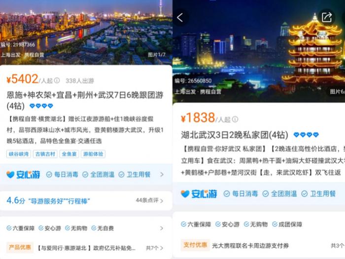 这一动作有力地提升了旅游者信心和市场人气。报告显示,其中有超过76%的游客游湖北选择跟团游。省心省力、全程服务的跟团游,依然是旅游者的主流选择,人数环比增长378%,精选航班、酒店并且提供打包价格优惠的携程自由行产品,人数环比增长49%。热卖的产品游恩施+神农架7日跟团游、宜昌+神农架+大九湖国家湿地公园5日私家团、武汉+黄鹤楼+东湖+长江三峡+三峡大坝4日跟团游、武当山4日自由行等。