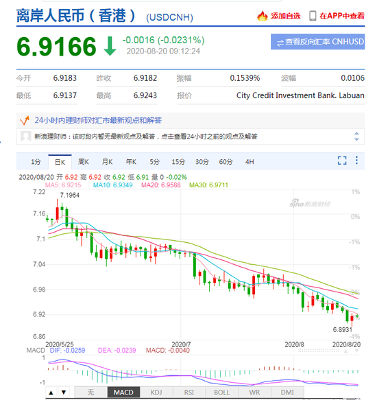 热点栏目8月20日,美元指数跌势暂止,人民币中间价报6.9274,下调106点,上一交易日中间价报6.9168,在岸人民币上一交易日收报6.9103。