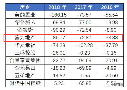 值得注意的是,自从2012年以来,富力地产的经营性现金流净额一直是净流出状态,2016-2018年分别流出33.38亿、72.87亿和86.17亿元。