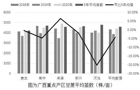 如果从重度干旱占比分析,影响面并不算太大,主要集中于高坡地,但北海和湛江干旱程度更严重。虽然桂南部分地区旱情较为严重,但是多年推广的桂糖、柳城良种具有出苗率高、分蔸性强、成活苗较多等特点。我们估计今年广西甘蔗平均苗数在4200—4900株/亩,若后期降雨达到正常值,则桂中地区有望弥补桂南单产下降的损失。