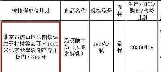 据北京市市场监管局通报,北京吉庆佳商贸有限公司经营的、标称北京圣祥乳制品厂生产的“圣祥”无糖酸牛奶(风味发酵乳,180克/瓶,2020/04/18),酵母检出值为160CFU/g,是国标最大限值的1.6倍;霉菌检出值为170000CFU/g,超标5665倍。