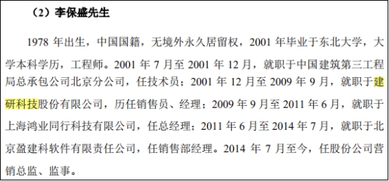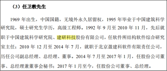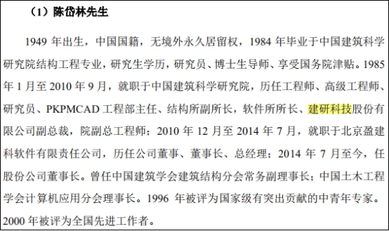 招股书显示,盈建科由陈岱林等21人共同出资设立,2014年7月变更为股份公司。信息显示,陈岱林曾任建研科技副总裁,另有5名董事、监事、核心人员均曾在建研科技任职。其中,任卫教曾任建研科技软件所结构软件综合研究室主任;梁博曾任建研科技研发工程师;李保盛曾任建研科技销售员、经理;王贤磊曾任建研科技研发工程师;董智力曾任建研科技施工软件事业部工程师。