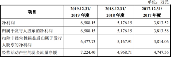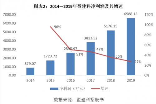 2014年至2019年,盈建科归属于发行人股东的净利润分别为1308.91万元、1723.72万元、2596.33万元、3813.58万元、5176.15万元、6588.15万元;经营活动产生的现金流量净额分别为1366.47万元、828.98万元、1847.08万元、4747.56万元、4968.71万元、7224.40万元。