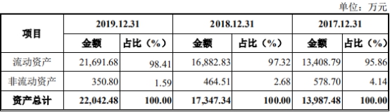 2014年至2019年,盈建科资产总计分别为3568.26万元、7432.11万元、1.05亿元、1.40亿元、1.73亿元、2.20亿元;其中,流动资产分别为2068.22万元、6874.50万元、1.01亿元、1.34亿元、1.69亿元、2.17亿元;非流动资产分别为1500.04万元、557.61万元、472.95万元、578.70万元、464.51万元、350.80万元。