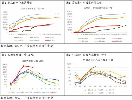 中美关系当前为市场的主要关注点。因美国下令中国驻休斯敦总领馆关闭,中国下令关闭美国驻成都总领馆,双方互关领馆,中美关系跌至几十年最低点。但目前在贸易采购方面,似乎并没有受到显著影响,根据USDA公布的周度大豆销售数据,中国一直在积极地采购美国大豆。截止到2020年7月16日,2019/20年度(始于9月1日)美国对中国(大陆地区)大豆出口装船量为1325.6万吨,高于去年同期的957.5万吨,美国对华大豆销售总量(已经装船和尚未装船的销售量)为1644.1万吨,同比增加15.0%。迄今美国对华售出610.0万吨2020/21年度交货的大豆,比上周提高148.6万吨。据Cofeed最新调查统计,2020年7月份国内各港口进口大豆预报到港157.5船1032.1万吨,8月初步预估1010万吨,9月初步预估880万吨,10月份初步预估810万吨,11月到港量初步预估820万吨,12月初步预估800万吨。若中国持续高位采购美国大豆,那么后期主要关注美豆表现是否会带动国内连粕上涨。