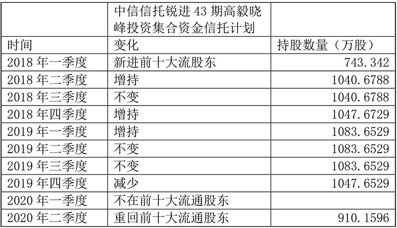 其中,高毅晓峰2号致信基金、中信信托锐进43期高毅晓峰投资集合资金信托计划均进入宏发股份的前十大股东。