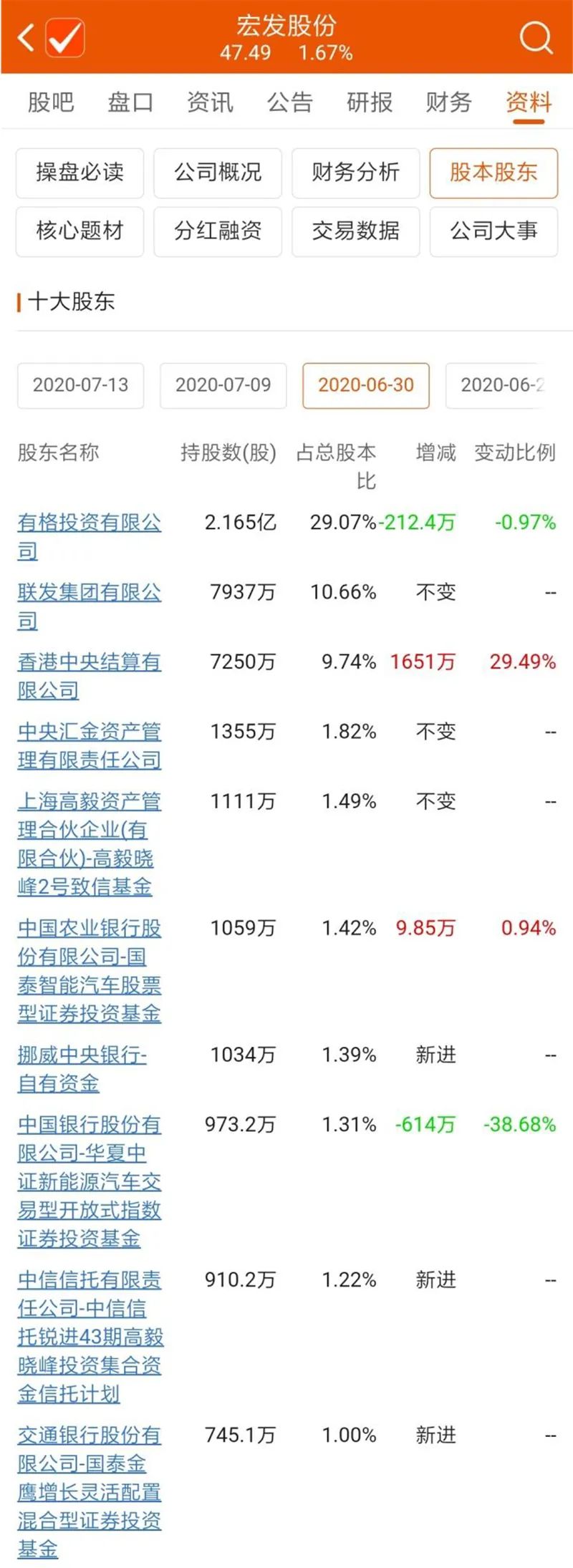 从宏发股份前十大股东来看,截至6月底,挪威中央银行成为新进前十大股东,香港中央结算有限公司二季度增持1651万股,徐治彪管理的国泰金鹰增长混合也是新进前十大股东。