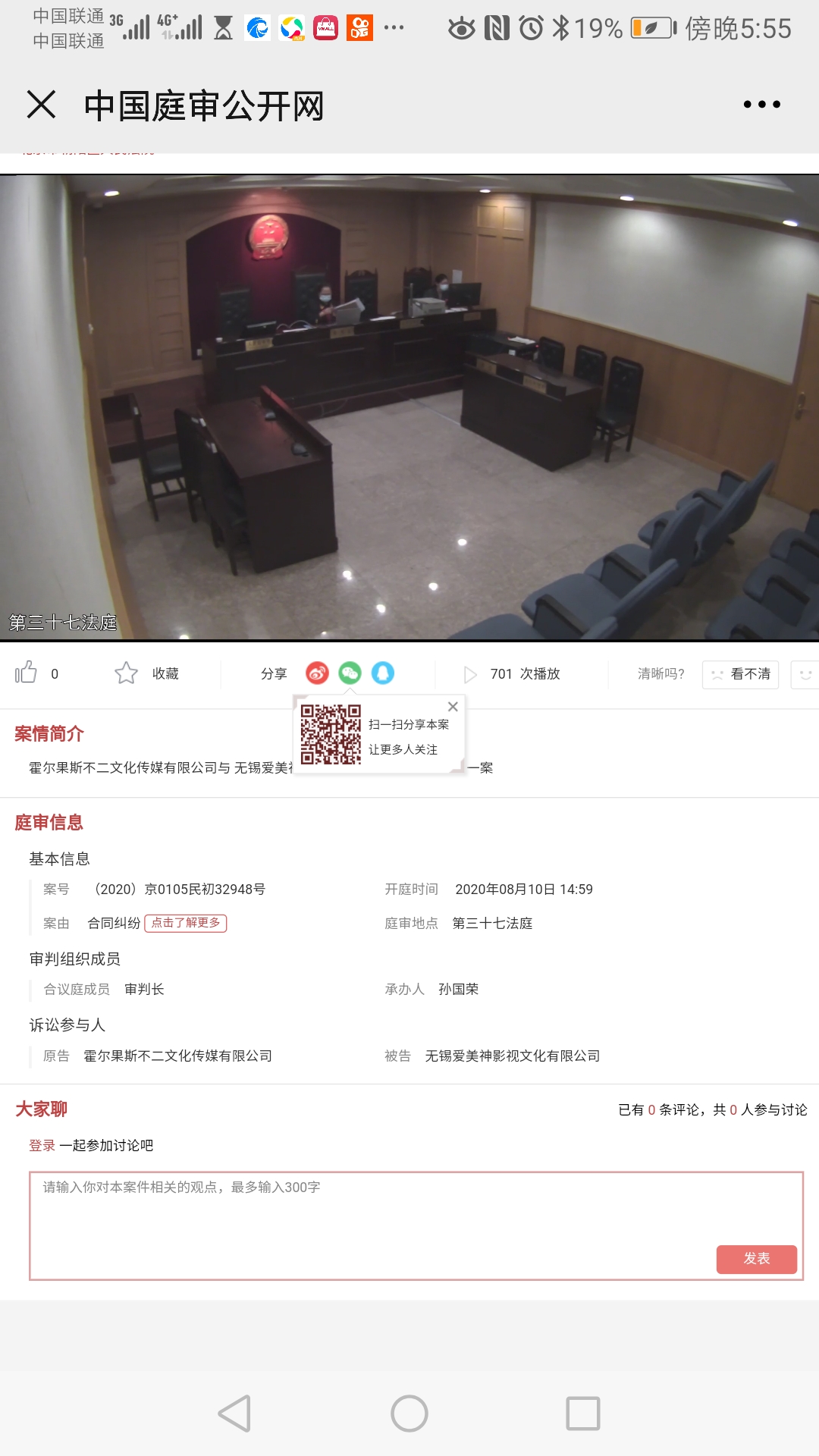 企查查显示,霍尔果斯不二文化传媒有限公司于近期新增民事一审公告,被告方为无锡爱美神影视文化有限公司,案由为合同纠纷,一审开庭时间为2020年8月10日。据悉,吴秀波本人为霍尔果斯不二文化实际控制人、最终受益人。无锡爱美神影视最终受益人为范冰冰与其母亲张传美。