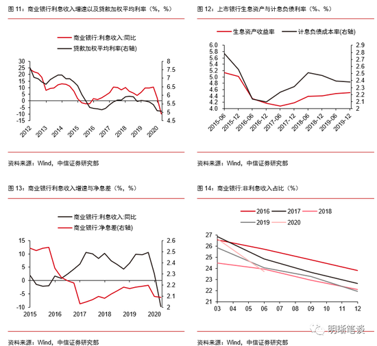 我们预计商业银行整体净利润增速并不会继续大幅下降,非正常类贷款占比有所上升。从关注类贷款确认不良来说,自2019年起非正常类贷款占比实际上即停止了连续的下降进程,持续推进的金融监管推进以及供给侧改革已经消化了较多的关注类贷款,后续通过大幅确认关注类贷款为不良的可能性不大。同时,由于小微信贷还本付息延期政策到期仍需等到2021年6月,预计年内商业银行非正常类贷款继续平稳暴露。由于一笔不良信贷往往在被确认为不良之前就已经逾期还本付息,因此商业银行对不良贷款不断暴露的预期(即可以观测到的拨备计提力度)可能隐含着2020年年内至2021年年中资产质量有所下降、利息收入下滑的情境。但由于目前商业银行已经应监管层指引开始提前拨备计提的节奏,我们预计拨备的计提以及利息收入的减少都是一个平稳的现象,大概率不会出现剧烈的波动
