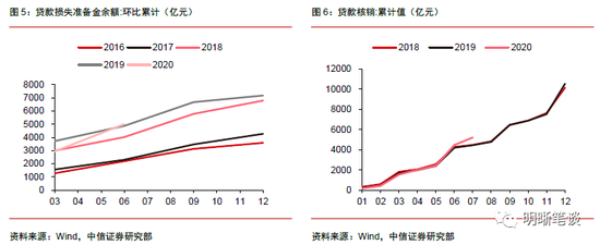 银行资产质量后续如何演绎:预计后市不良资产逐渐暴露但总体可控。从银保监会当前公布的数据看,二季度不良贷款增加了约1200亿元,单季不良贷款核销了约2900亿元,但这些不良贷款并非完全由正常类信贷形成,二季度关注类贷款也减少了约1700亿元,部分关注类贷款也被确认为不良,因此目前商业银行体系出于审慎考虑正处于“加大力度确认不良+加大不良核销水平”的状态。预计下半年商业银行不良类贷款生成率可能会升高。不良贷款生成率的上移会导致不良率的上升,如果商业银行继续维持当前的不良处置速度,那么下半年由多计提拨备导致的利润增速下探可能仍将继续。