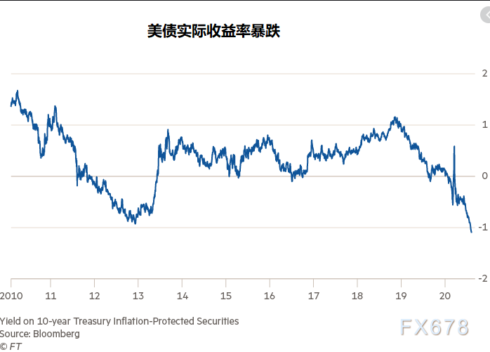 但是以本国货币借款的国家不会拖欠债务,至少不会因为无法偿还债务而违约。因此美国将通过大量印钞来“履行”自己的义务,这可能会带来严重的通货膨胀并打压美元(谁想拥有一种购买力越来越少的货币呢?)。如果为了获得收益投资者往往会买进长期债券(这种交易在过去30年里创造了大量财富),但是在货币持续贬值的情况下,这似乎并不是稳妥的选择。事实上美国的实际利率已经跌至负债,暗示购买长期债券可能也是一笔亏本的买卖。