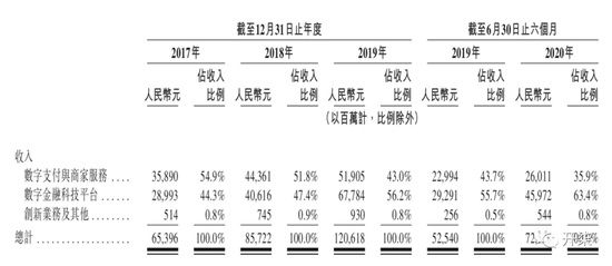 而面对疫情,蚂蚁今年上半年收入依然高速增长的主要原因是“数字金融科技平台”业务的高速增长。比如,传统的支付收取佣金的业务只同比增长了13%,而“数字金融科技平台”收入则同比增长了57%。在收入比例上,“数字金融科技平台”的比例也由2019年的55.7%上升到了63.4%。
