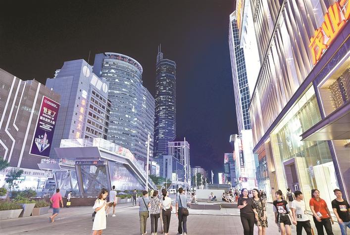 80年代 东门商业步行街被深圳人亲切地称之为“老街”,见证了改革开放及深圳建市后的巨变。目前有34栋现代化大型商厦鳞次栉比地分布在步行街区17条主要街道上,社会消费品年零售总额达110亿元。
