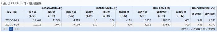 Wind数据显示,C圣元24日融券余额为2.38亿元,至25日增加至2.88亿元,连续两日大于当日融资余额。