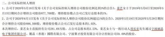 资料显示,项乐宏的妻子姜艺早在2018年2月就开始持续增持自家公司股票,目前项乐宏、姜艺夫妇持有上市公司近60%的股份。