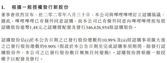 根据协议,B站将以1.48港元/股的价格认购欢喜传媒新发行的普通股约3.466亿股,总认购价格为5.13亿港元。交易完成后,B站将持有欢喜传媒扩股后总股本约9.90%的股份。