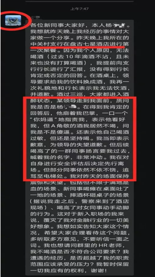 不久前,厦门国际银行北京分行一名刚刚大学毕业的新员工在酒桌上的遭遇再次引发了人们对于中式酒桌文化的讨伐。