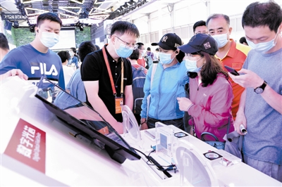 天宸北斗卫星导航技术(天津)有限公司工作人员为参观者讲解自动驾驶系统。