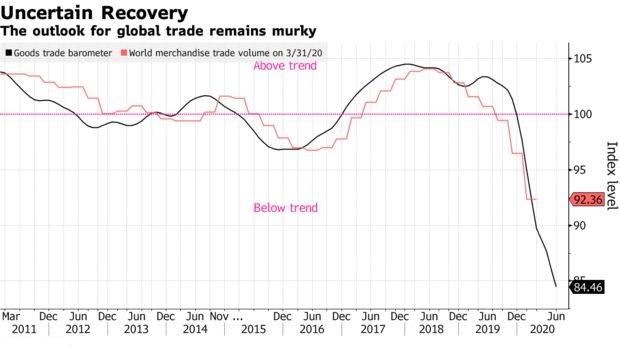 下图显示了全球商品贸易的晴雨表(红线),以及世界商品贸易量(黑线),可以看到进入2020年后明显暴跌,显示全球贸易的前景仍然不明朗