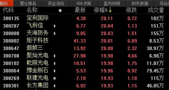 截至午间收盘,上周五涨停的创业板12股全线飘红,其中有9只涨幅超过10%。