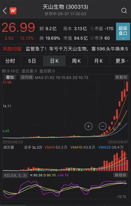 不过板块内部来看,创业板个股大幅分化,短线资金依旧热衷于低位股的炒作,宁德时代等权重个股重挫。总体来看,风险偏好的短线资金仍然聚焦于创业板低价股的博弈机会,低价股龙头天山生物(维权)周一早盘震荡走高,截至午间收盘收涨12.13%。
