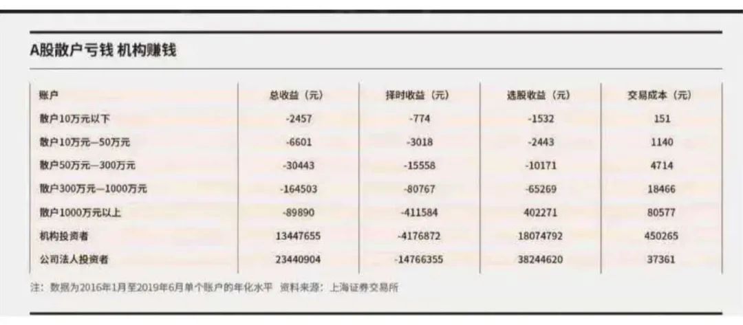 还记得上交所的那张统计表格吗?在过去的三年多时间内,无论是超级小散、超级大散,还是机构投资者甚至是公司法人投资者,在择时收益这一项上都是负的,只有精选个股,才为机构投资者和公司法人投资者贡献了丰厚的收益。
