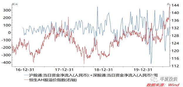 现在A股相对于H股高估太多,AH溢价位于历史最高水平附近,与2015年股灾前的水平基本相当。所以未来一段时间,对北向资金的流入预期应该放低,阶段性流出概率更大。