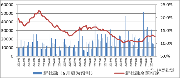 社会融资总量增速仍在上行,按照我们自己的测算,8月社融增速将超过13%,未来2个月仍会继续上升。