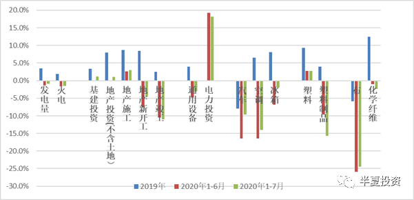 电力投资基本全是基建,上半年累计同比增速高达15%以上,7月起开始拐头向下。